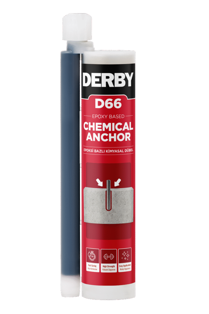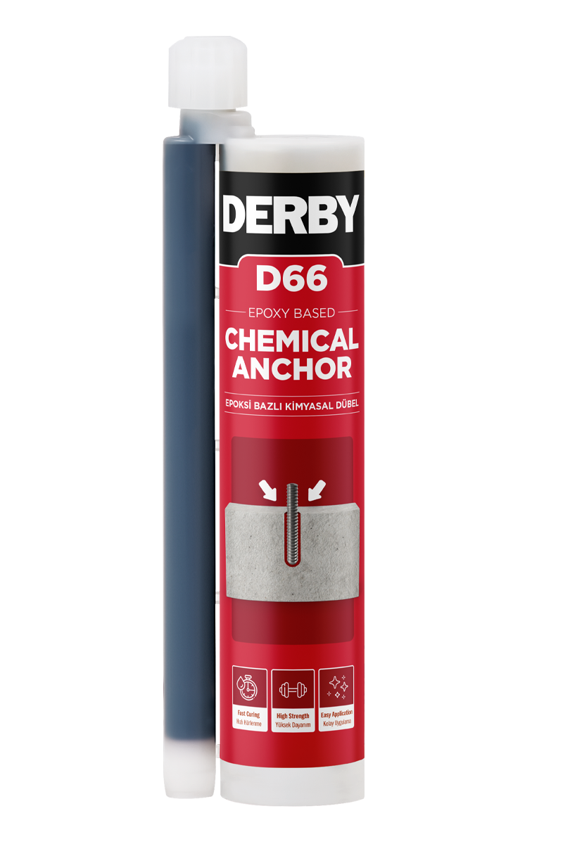 Derby D66 Kimyasal Dübel Epoksi, epoksi akrilat esaslı yapıştırma ve montaj harcıdır. Macun kıvamındaki yapısı ile zemin, duvar ve tavan uygulamalarında başarı ile kullanılır.